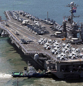 George Washington uçak gemisi 75 savaş uçağı taşıyor ve 6 binden fazla mürettebata sahip. Bu gemiye en az 4 savaş gemisi eşlik ediyor. Bir yetkili, ''Uçak gemisi elbette tatbikata katılıyor ancak ayrıntılı bilgi veremem'' dedi.